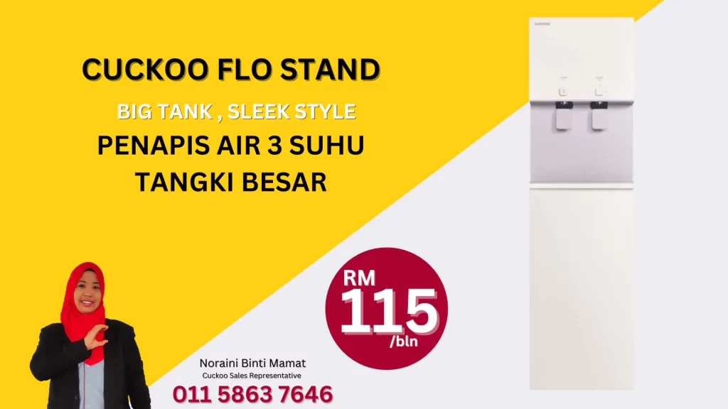 Jangan tunggu lagi! Jika anda berada di Selangor dan sedang mencari penapis air berkualiti, saya sedia membantu anda untuk daftar & pasang CUCKOO FLO StandΒ dengan cepat dan mudah.